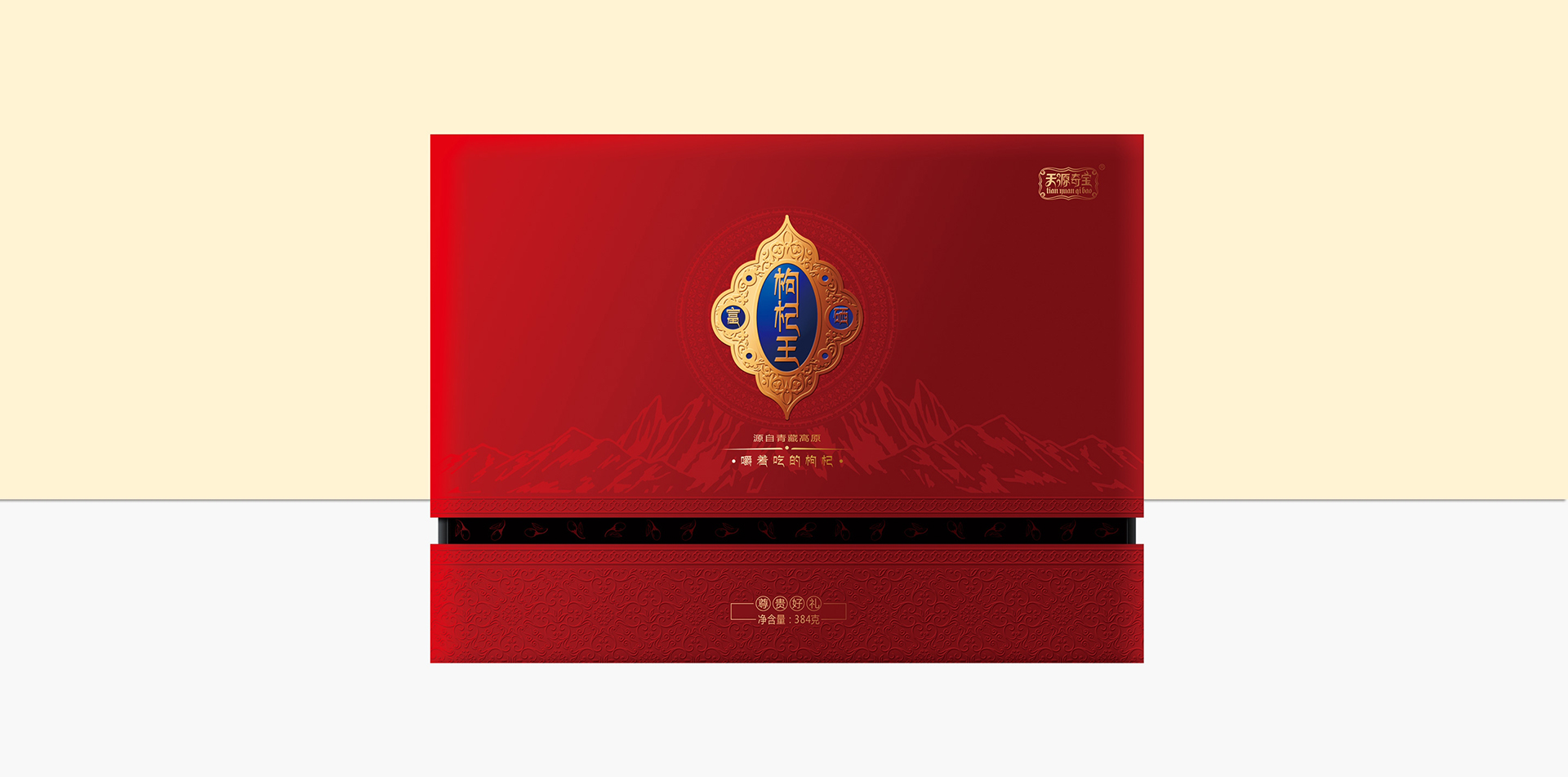 天源奇寶生物科技公司坐落于青藏高原、美麗的夏都古城西寧市南川工業(yè)園區(qū)。青海省是我國(guó)多民族聚居的地區(qū)之一,也是我國(guó)北方少數(shù)民族發(fā)祥地之一。我們?cè)诎b設(shè)計(jì)中局部運(yùn)用了少數(shù)民族的紋理, 在表現(xiàn)“ 民族風(fēng)” 的同時(shí),又保證了包裝整體高檔、精致的調(diào)性。
